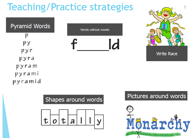 The learning strategies below can be used to support learning spellings at home and in school.